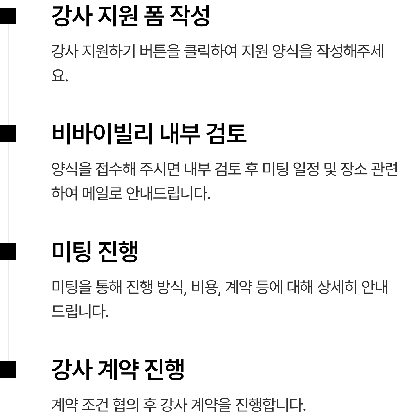 강사 지원하기 버튼을 클릭하여 지원 양식을 작성해주세요.